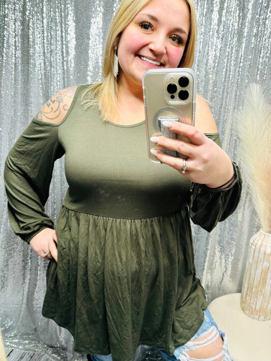 Babydoll Long Sleeve Open Shoulder Flowy Top