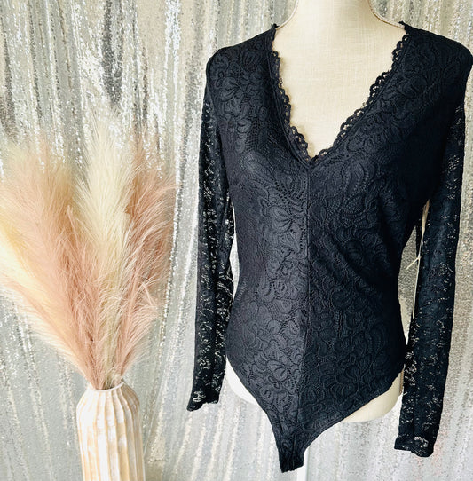 Baevely - Cream Long Sleeve Keyhole Front Bodysuit