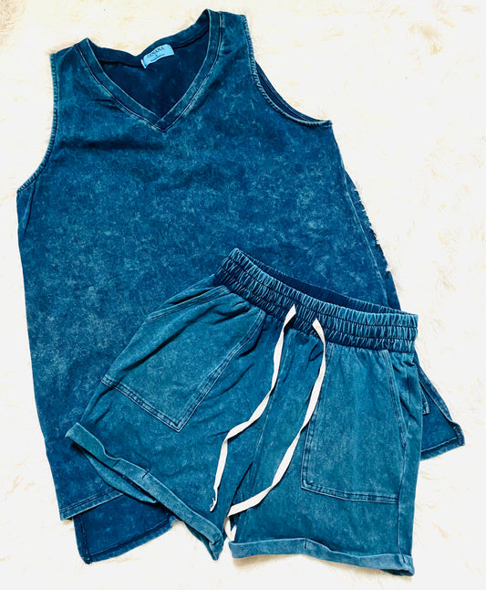1 : Zenana - Mineral Wash Vneck Top Or Shorts