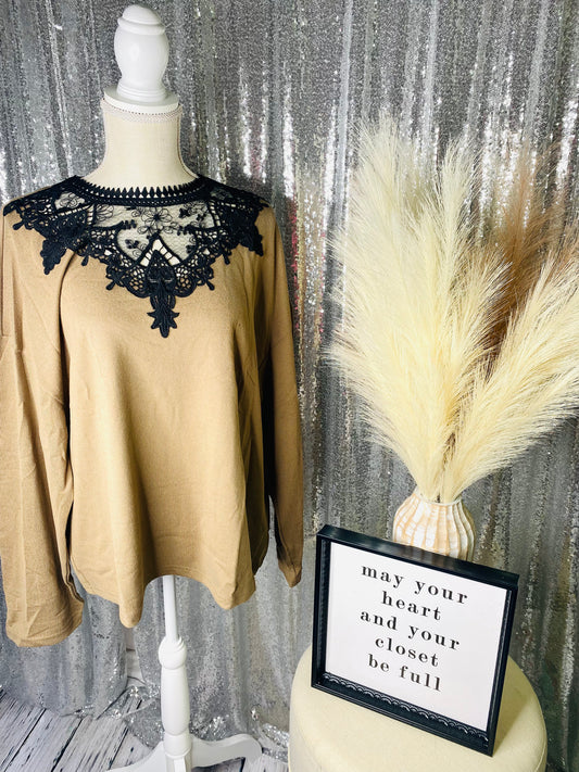 Anna kaci - Bronze Lace Neck Drop Shoulder Top