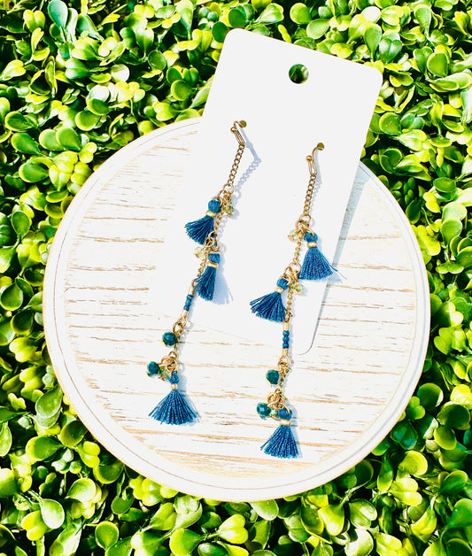 Crazy Train - Black / Teal / Pink / White Beaded Tassel Earrings