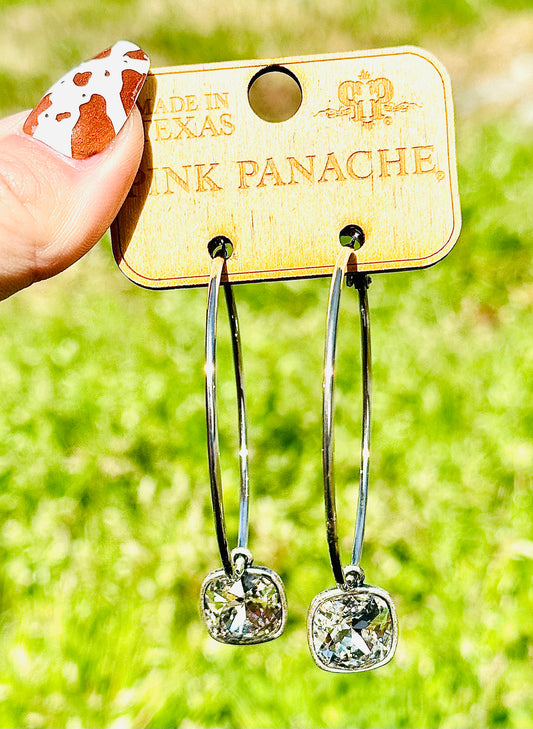 Pink Panache - Silver Hoop With Dangle Rhinestone Earrings