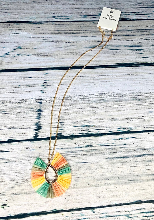 Long Beige Beaded Colorful Sparkle Cloth Tassel Necklace