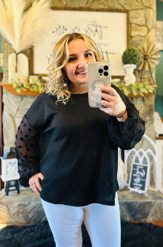 Black Spot Texture Mesh Splicing Long Sleeves Top