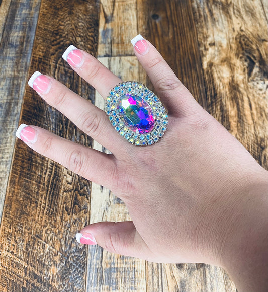 Criss Cross CZ Rhinestone Silver Adjustable Ring