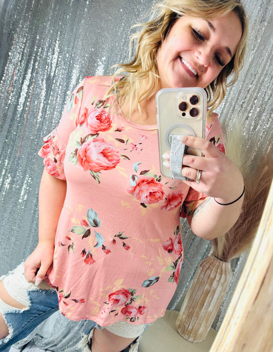 Floral Ruffle Sleeve Top
