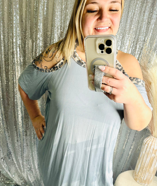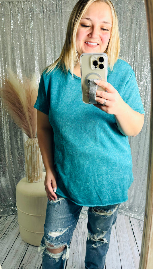 Teal Mineral Washed Ripped Back Short Sleeve Sweatshirt