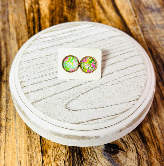 Pink Floral Cheetah Stud Earrings