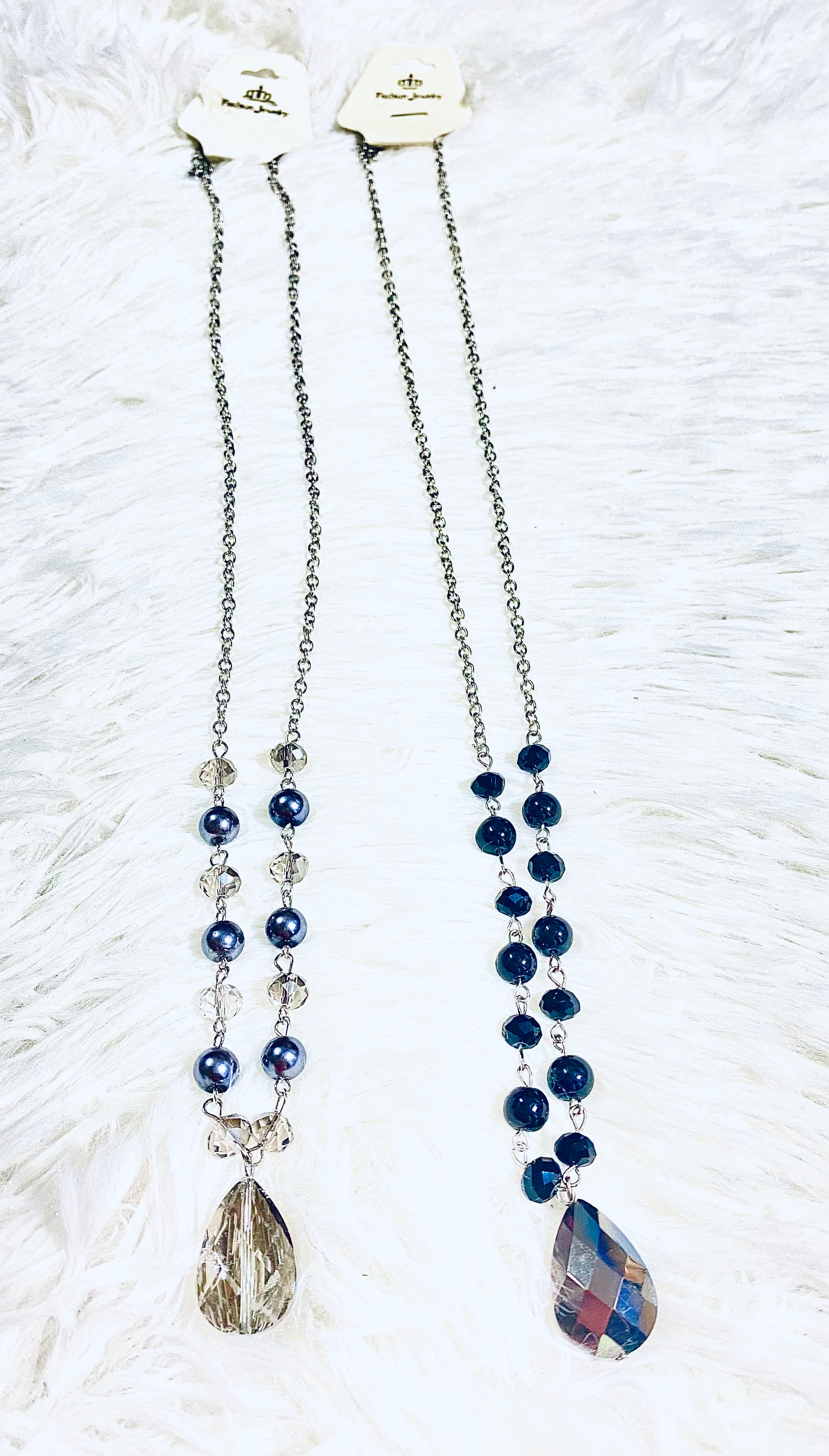 Long Beaded Pearl Teardrop Jewel Pendant Necklace