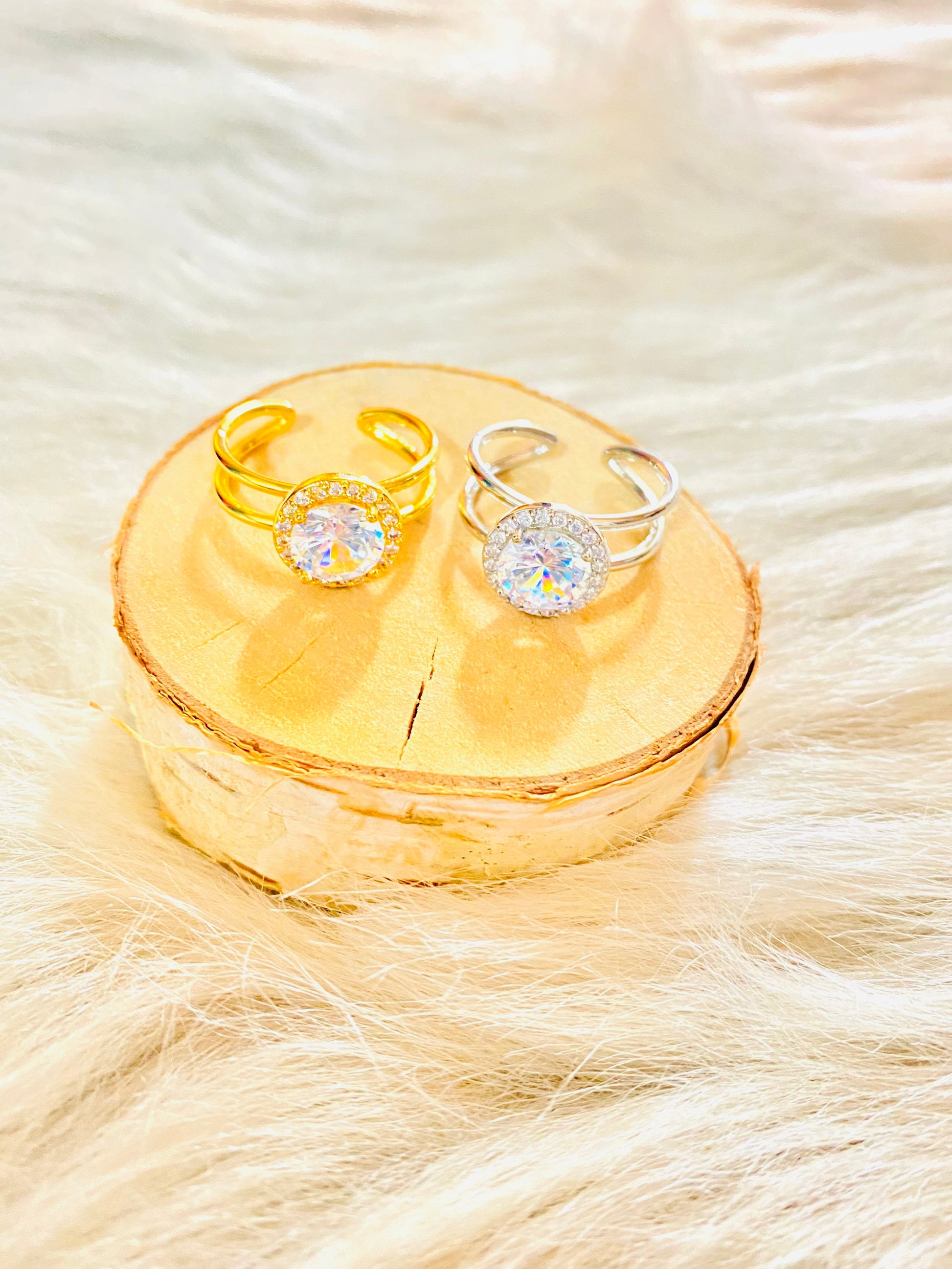 Beautiful round rhinestone ring. Comes in Silver and Gold.